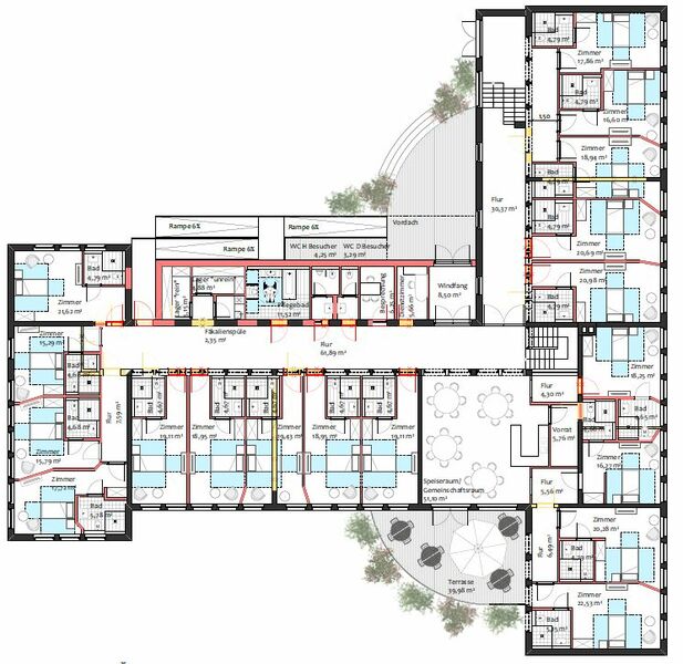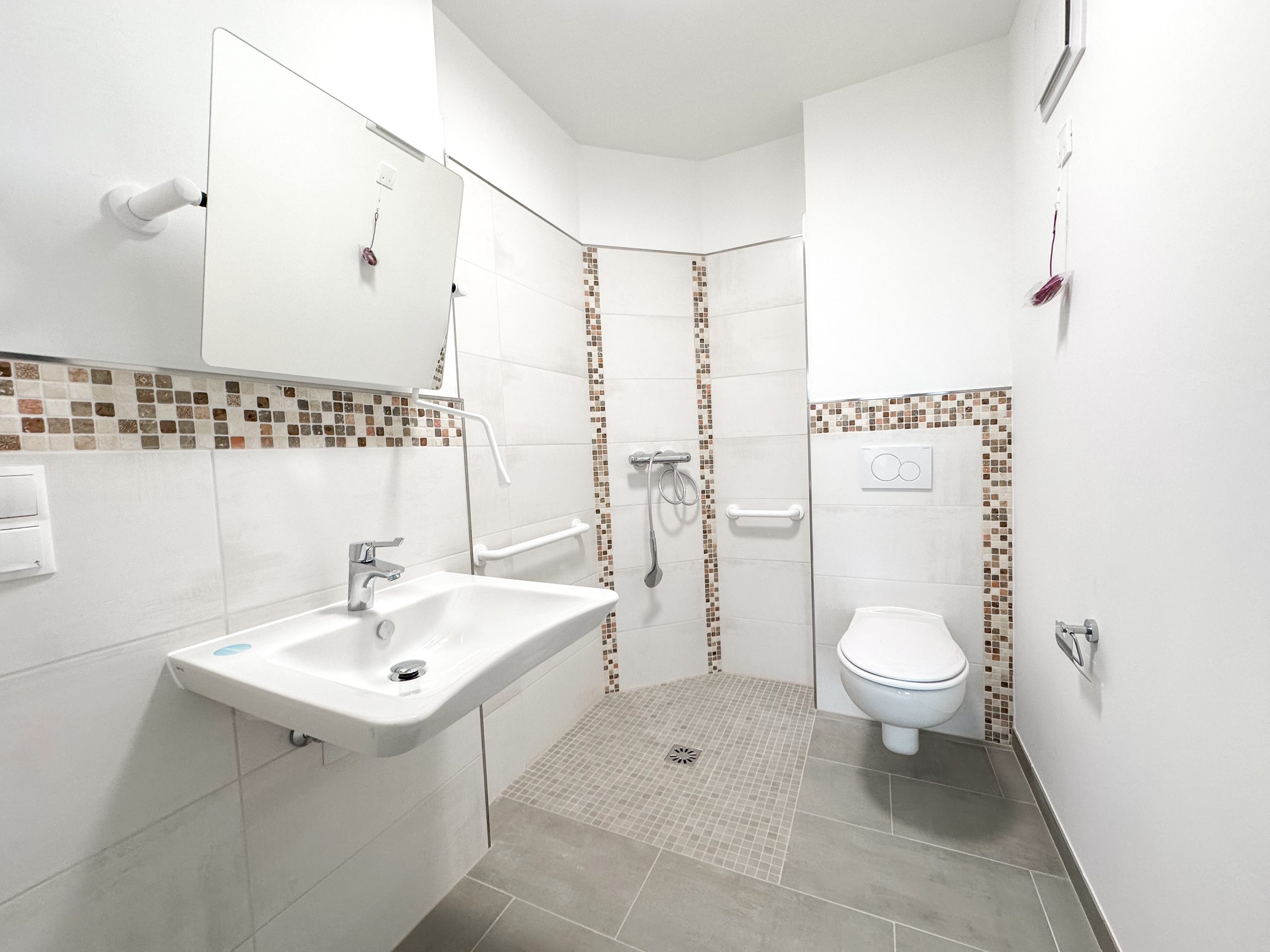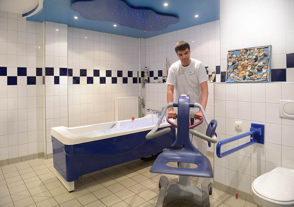 Für eine sichere und bedarfsgerechte Pflege stehen 5 barrierefreie Badezimmer zur Verfügung – vier mit Dusche und eines mit Badewanne. Eine kleine Grünfläche im Außenbereich bietet zusätzliche Möglichkeiten zum Aufenthalt an der frischen Luft.