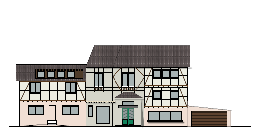 Ergänzt wird das Wohnkonzept durch eine Garage für Fahrzeuge, die Komfort und Barrierearmut zusätzlich unterstützt.