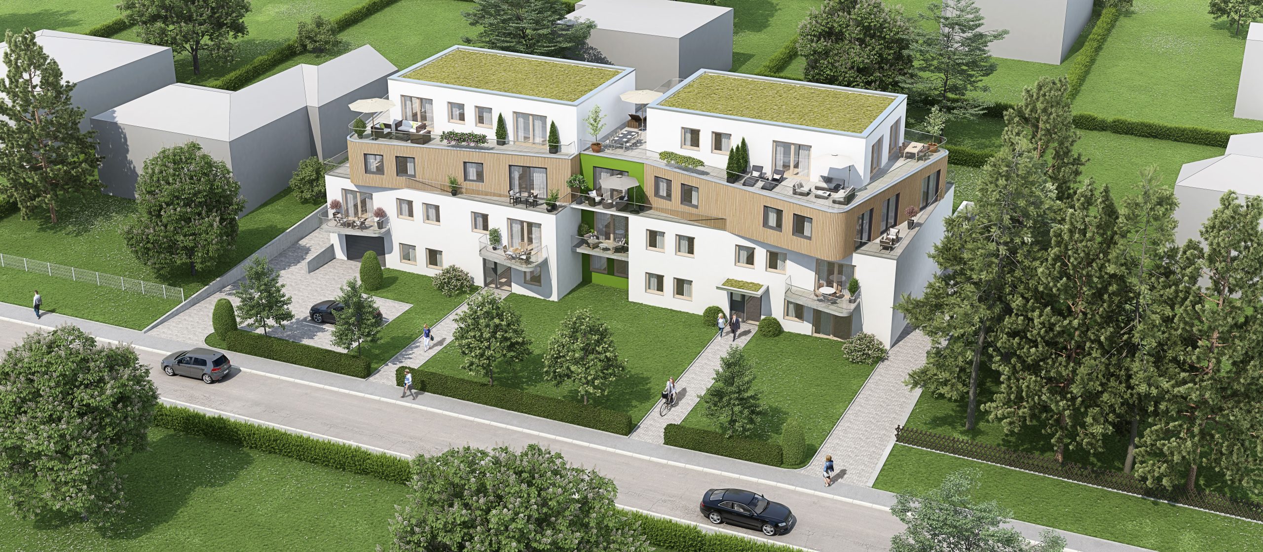 In der Rasenallee 14–16 entstehen rund 20 moderne Appartements, die speziell auf die Bedürfnisse des betreuten Wohnens zugeschnitten sind. Der Großteil der Wohnungen verfügt über einen eigenen Balkon und bietet helle, gut geschnittene Wohnräume mit hoher Lebensqualität.